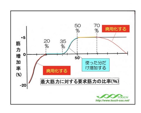 医学研究では、最大筋力に対する使用割合によって筋肉の変化を以下のように分類しています: