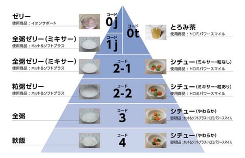 日本摂食嚥下リハビリテーション学会が定めた「嚥下調整食分類2021」という基準があり、食形態をコード0〜4の段階に分類しています。これを参考にしながら、その方の状態に合った食事を選ぶのが嚥下調整食の考え方です。